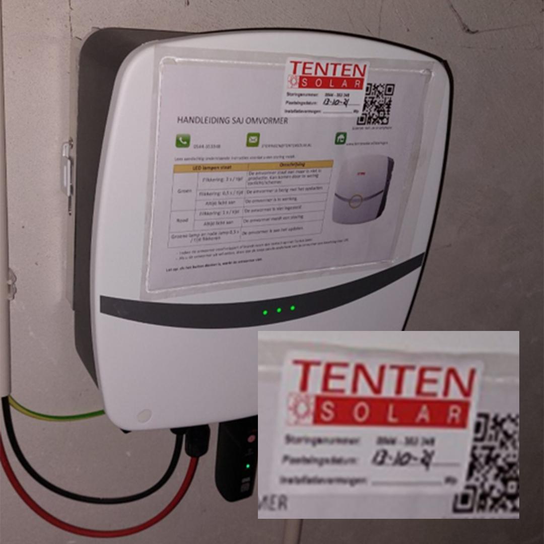 Graag ontvangen we wel nog een foto van de omvormer. Op een sticker aan de voorzijde staat vaak de installatiedatum ingevuld, deze graag leesbaar in beeld.