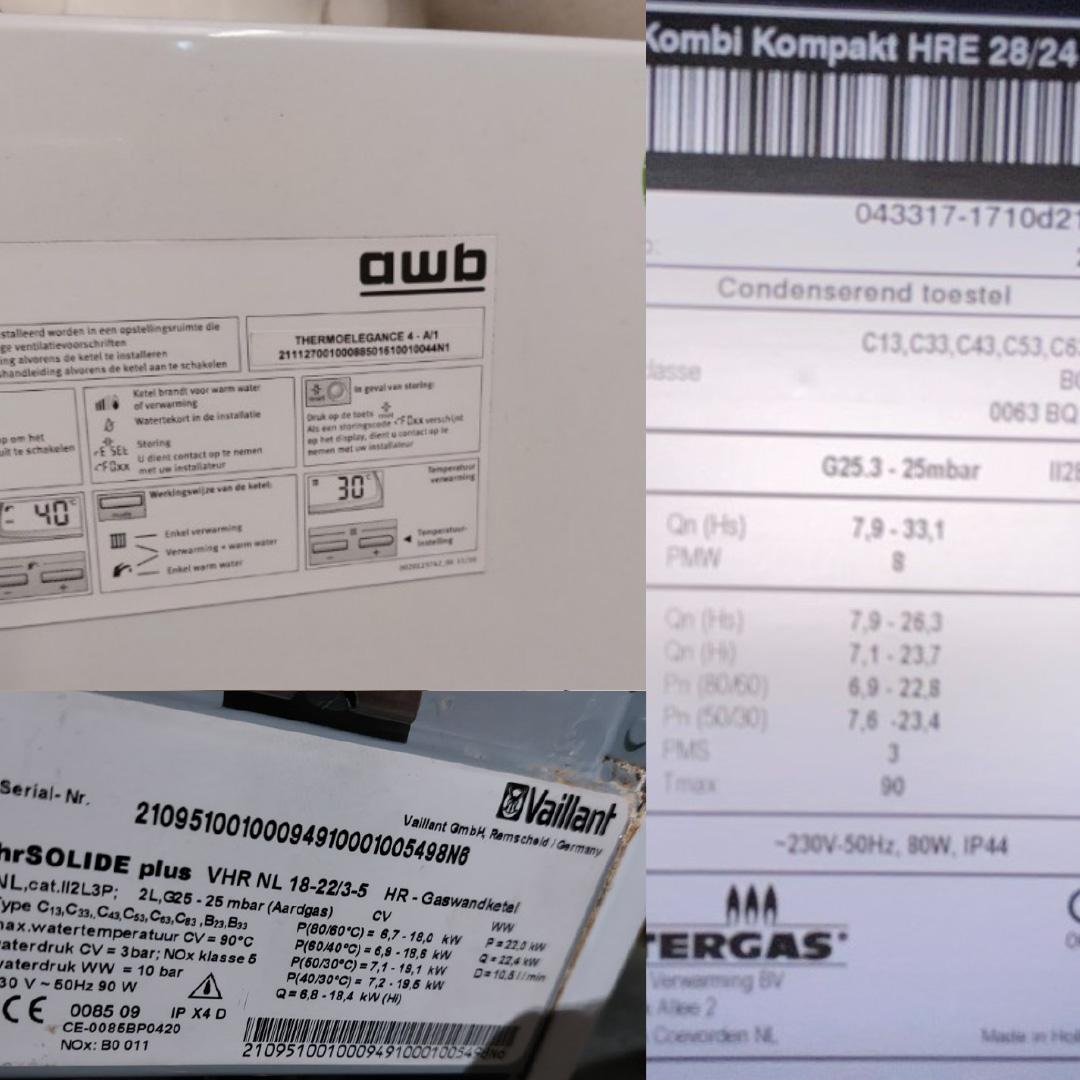 De sticker bevindt zich vaak aan de bovenzijde (Nefit) of onderzijde (Remeha/Intergas/ Vaillant) van de ketel. Soms zit de sticker in het klepje van de verwarmingsinstallatie, zie hieronder enkele voorbeelden van type-plaatjes.